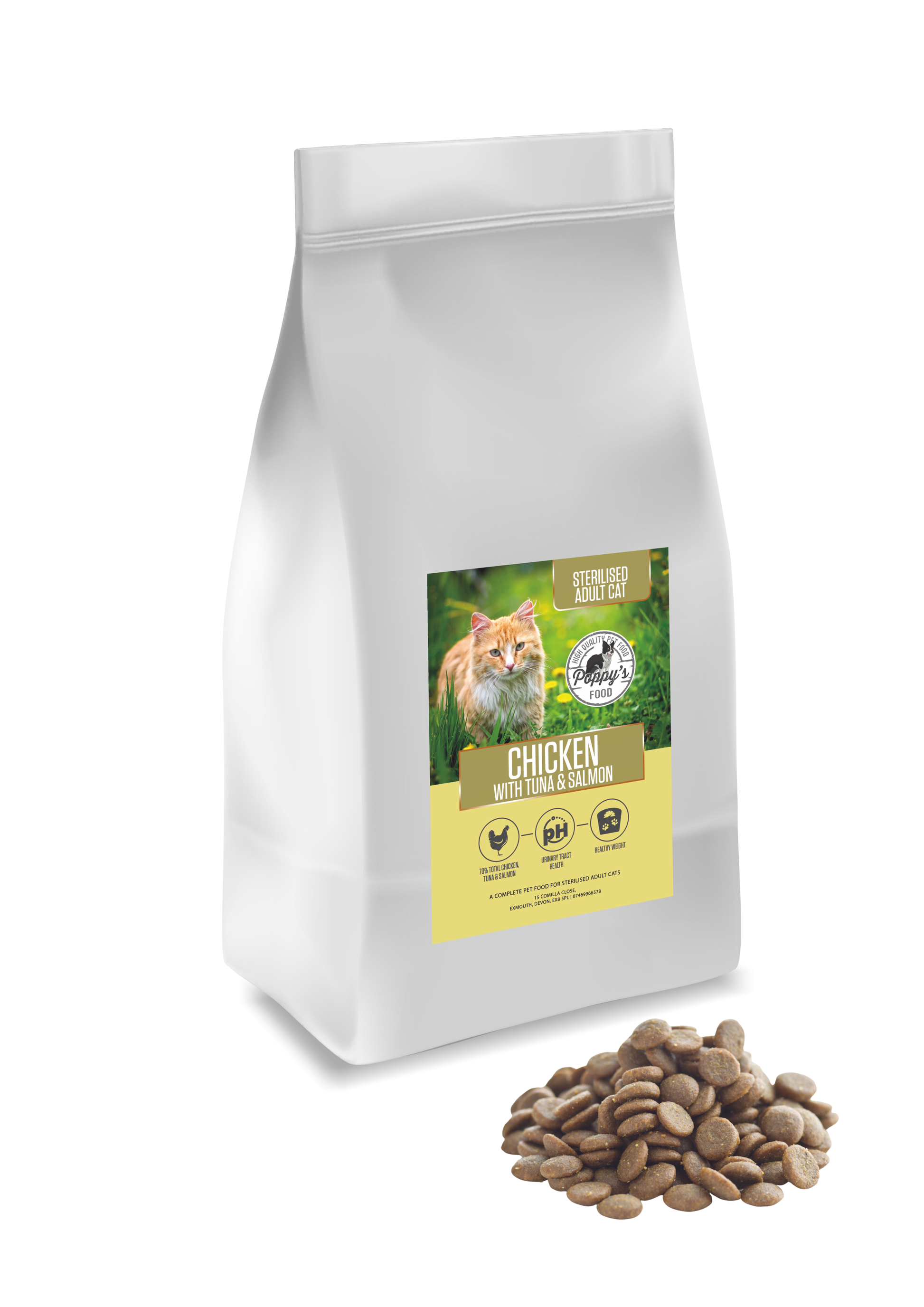 Poppy's Sterilised Adult Cat, Chicken With Tuna & Salmon.