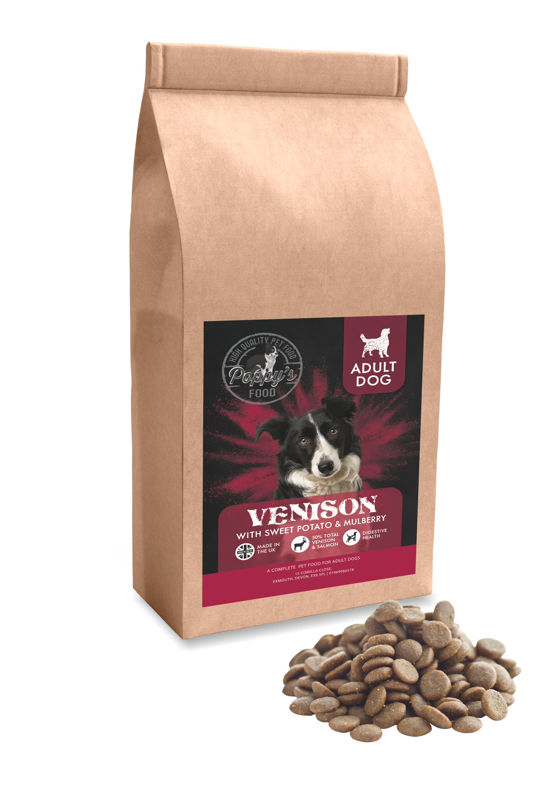 MINIMUM 26% FRESHLY PREPARED VENISON, responsibly sourced and naturally preserved using rosemary extract. A fabulous Novel protein, no added Grain.